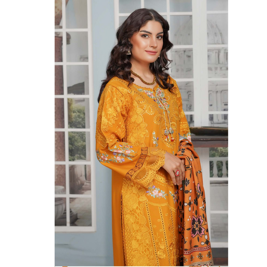 (TURMERIC) Heavy Embroidered Dhanak Ready to Wear Dress - MUNIRA