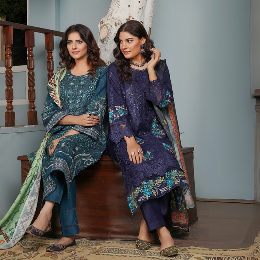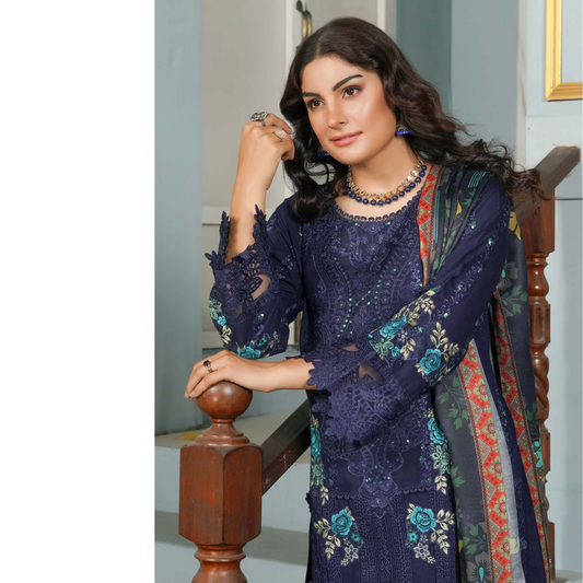 Regular price £34.99 GBPRegular priceUnit price perSale price £34.99 GBP(NAVY BLUE) Heavy Embroidered Dhanak Ready to Wear Dress - MUNIRA