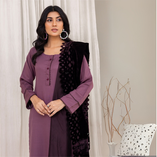 (Dull Purple) 3 Pc Dhanak Dress with Laser Velvet Shawl | Winter Collection | Rangz | UMRGZ3504
