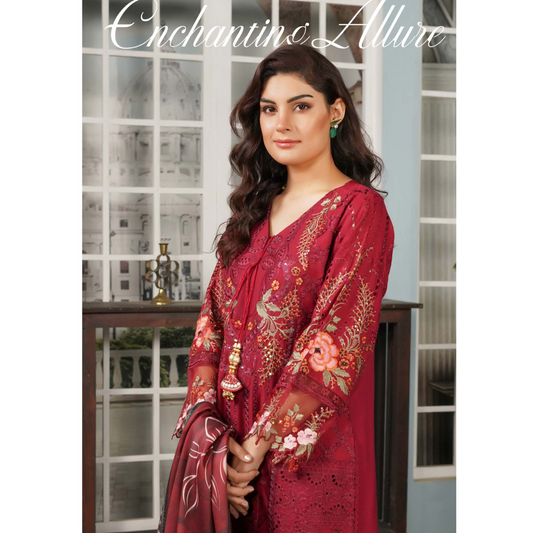 (MAROON) Heavy Embroidered Dhanak Ready to Wear Dress - MUNIRA