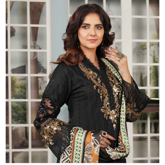 (black) Heavy Embroidered Dhanak Ready to Wear Dress - MUNIRA