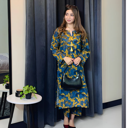 (Multi) 2 Pc floral Printed Khaddar Pakistani Co-Ords Set | Ready to wear| Naubahar