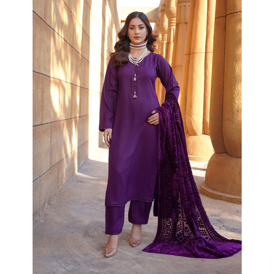 (Wine Red) 3 Pc Embroidered Khaddar Collection with Shawl | Ready to wear| Hayats