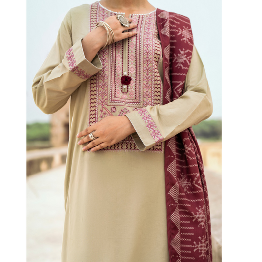 (Beige) Embroidered Dhanak Collection Pc Ready to Wear by Casuallite
