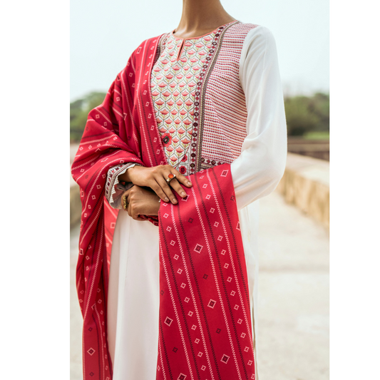 (Red) Embroidered Dhanak Collection Pc Ready to Wear by Casuallite