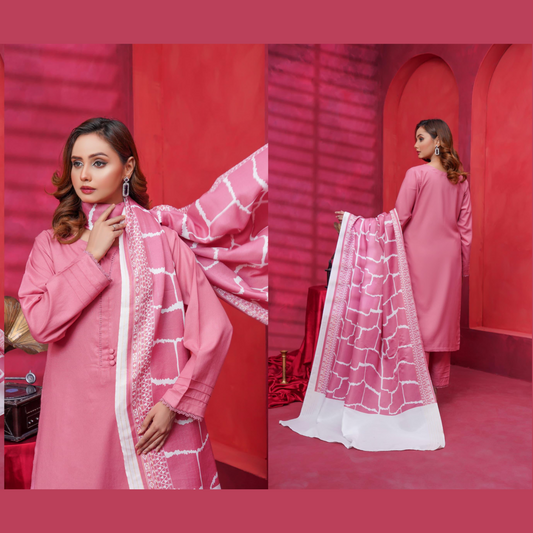 (Pink) Dhanak Dress with Wool Shawl |3 Pc| Winter Collection | Hayats