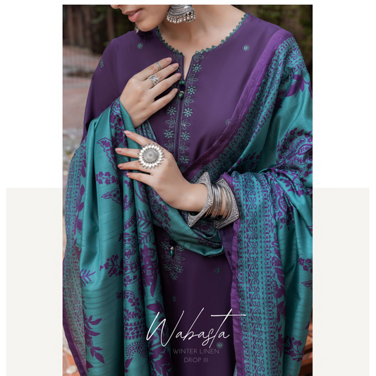 Regular price £29.99 GBPRegular priceUnit price perSale price £29.99 GBP(Purple) Embroidered Linen 3 Pc Ready to Wear by Casuallite