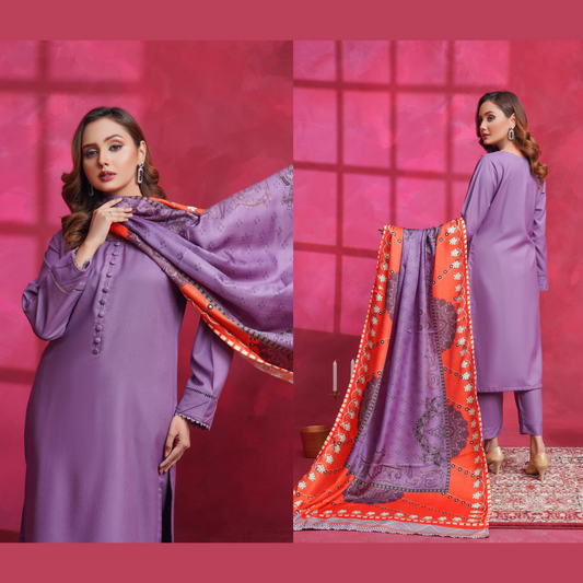 (Lavender) Dhanak Dress with Wool Shawl |3 Pc| Winter Collection | Hayats