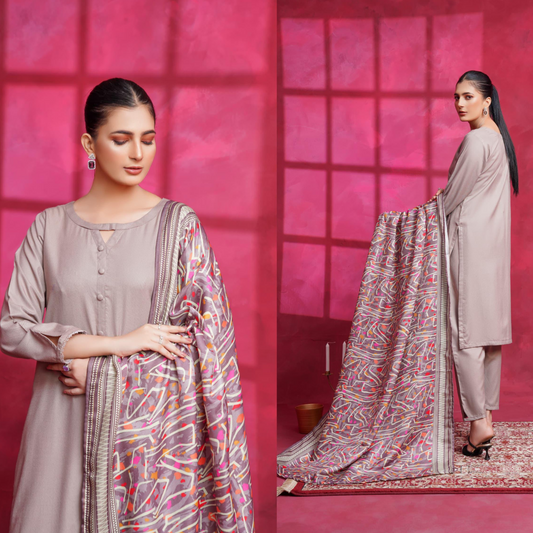 (Pale Silver) Dhanak Dress with Wool Shawl |3 Pc| Winter Collection | Hayats