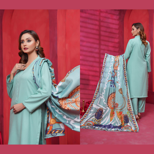 (Cyan Opaque) Dhanak Dress with Wool Shawl |3 Pc| Winter Collection | Hayats
