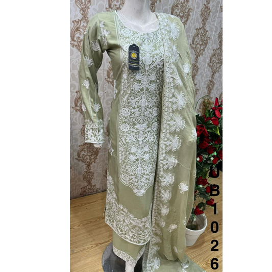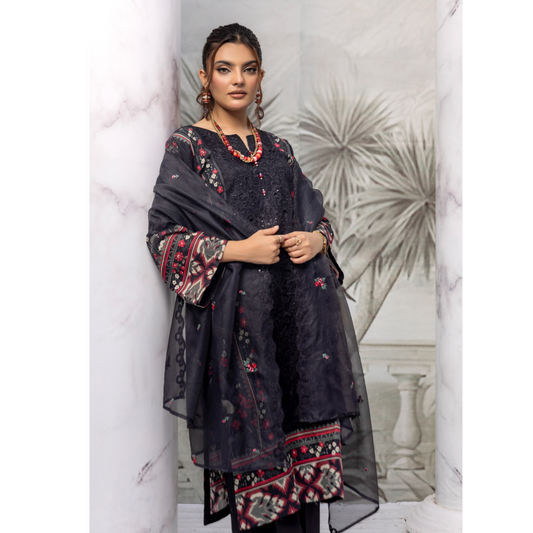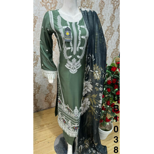 3 Pc Embroidered Linen Dress With Embroidered Chiffon Dupatta By UB