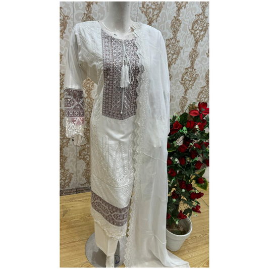 Regular price £32.99 GBPRegular priceUnit price perSale price £32.99 GBP(Bone Beige) 3 Pc Embroidered Viscose Pakistani Dress With Silk Printed Dupatta | Winter Wear | Heera's