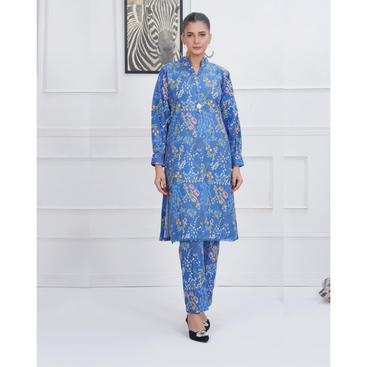 Blue 2 Pc floral Printed Khaddar Pakistani Co-Ords Set | Ready to wear| Hayats
