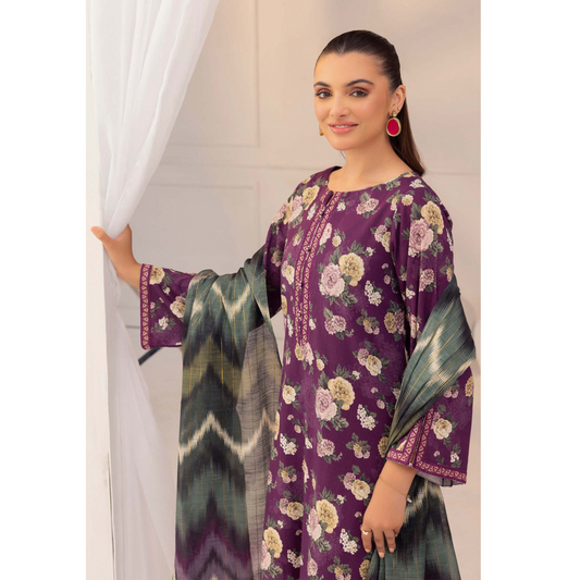 Grape Purple 3 Pc Printed Khaddar Ready to Wear Dress - Adan's libas
