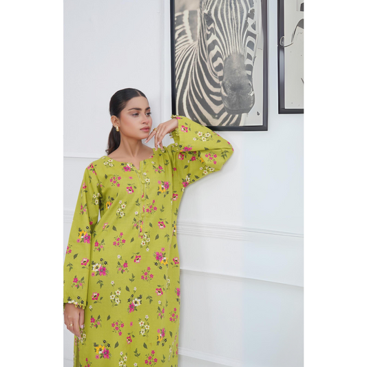 Avocado green 2 Pc floral Printed Khaddar Pakistani Co-Ords Set | Ready to wear| Hayats