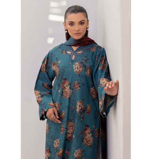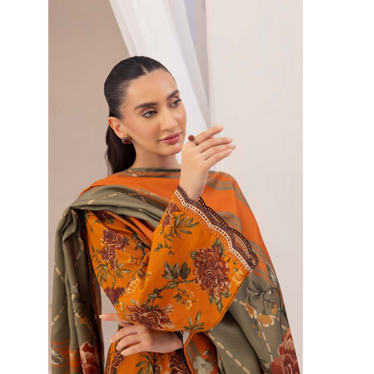 Soft Amber 3 Pc Printed Khaddar Ready to Wear Dress - Adan's libas