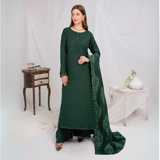 (green) 3 Pc Dhanak Shirt & trouser with Dhanak Shawl | Winter Collection | SIMRANS