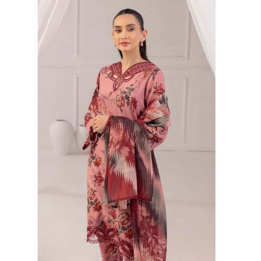 Burnt Pink 3 Pc Printed Khaddar Ready to Wear Dress - Adan's libas