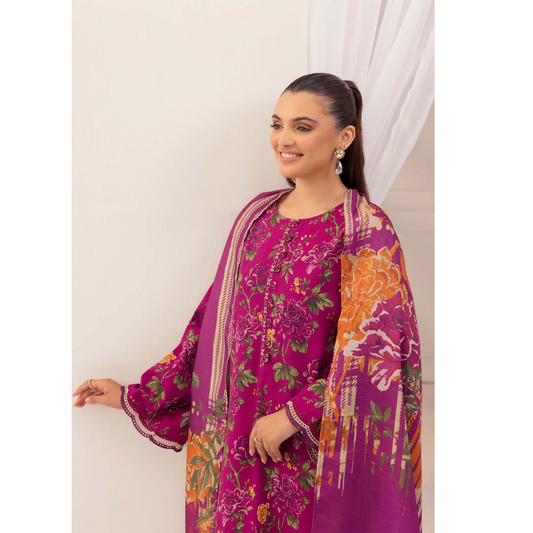Plum Purple 3 Pc Printed Khaddar Ready to Wear Dress - Adan's libas