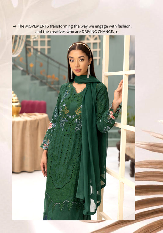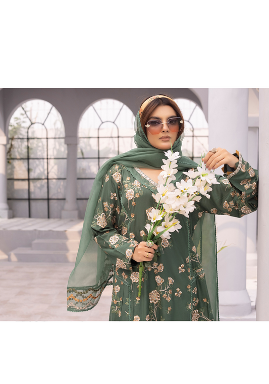 (Green) Embroidered Linen with Chiffon Duppatta - Simrans