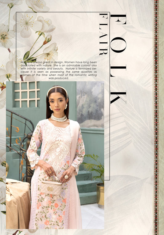 (Pale Peach ) Embroidered Linen with Chiffon Duppatta - Simrans