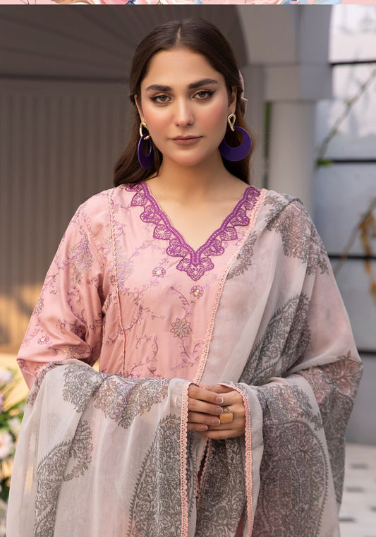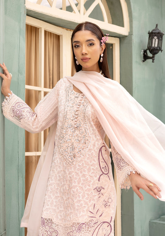 (Pastel Pink) 3 Pc Embroidered Linen Dress - Simrans