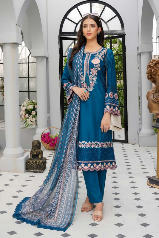 Regular price £29.99 GBPRegular priceUnit price per£39.99 GBPSale price £29.99 GBP(Blue) Heavy Embroidered Cotton Linen Ready to Wear Dress - MUNIRA