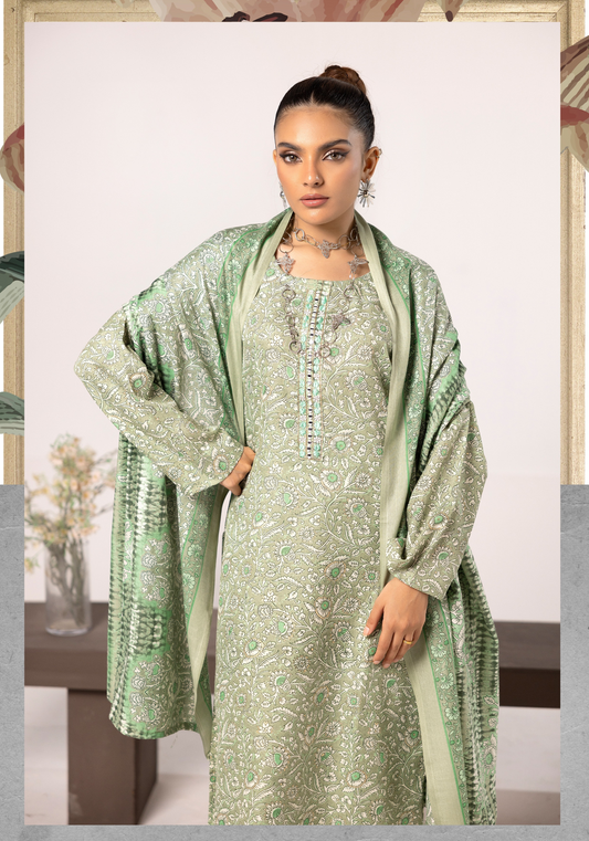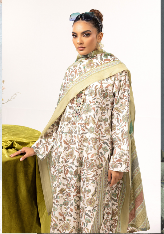 Thistle Green| Printed Linen Shalwar Kameez & Dupatta | 3 Pc | Ready-to-wear | Simrans
