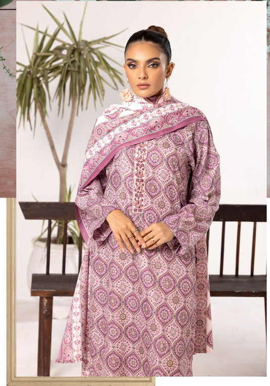 Wisteria Purple Printed Linen Shalwar Kameez & Dupatta | 3 Pc | Ready-to-wear | Simrans