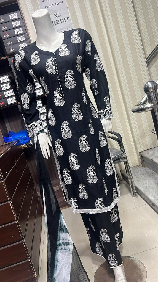 Regular price £21.99 GBPRegular priceUnit price perSale price £21.99 GBPBlack | Printed Linen Shalwar Kameez & Dupatta | 3 Pc | Ready-to-wear | Simrans