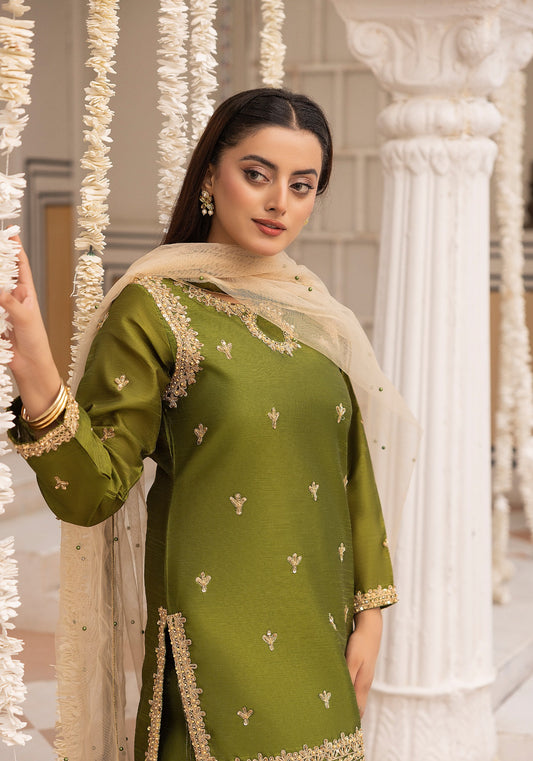 (Olive Green) Embroidered Raw Silk Sharara | Wedding Wear | Simrans