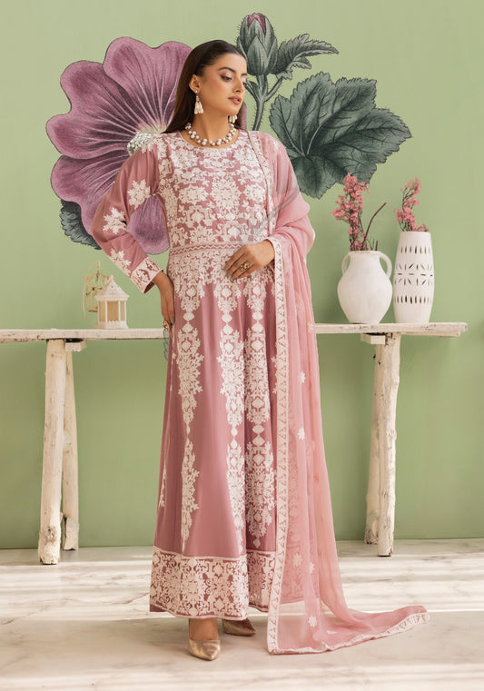 Mauve | Embroidered Linen Long Frock (Maxi) | 3 Pc | Ready-to-wear | Simrans