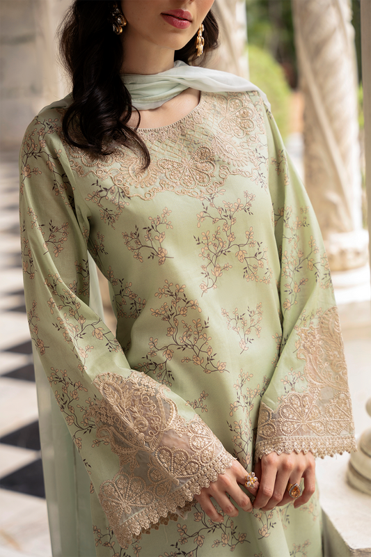 Regular price £24.99 GBPRegular priceUnit price per£34.99 GBPSale price £24.99 GBPPista Green Embroidered Cambric Lawn 3 Pc Dress - Esra Fashion