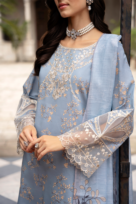 Dull Sky Blue Embroidered Cambric Lawn 3 Pc Dress - Esra Fashion
