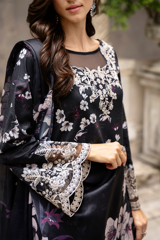 Black Embroidered Cambric Lawn 3 Pc Dress - Esra Fashion