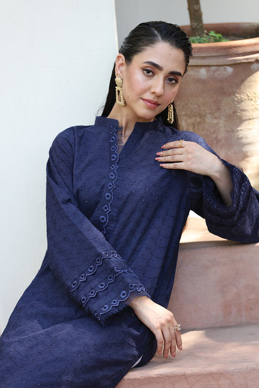 Blue 3 Pc Chikenkari Lawn Dress - Umnaa