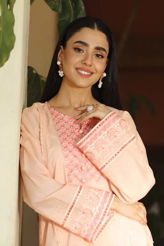 Peach 2 Pc Embroidered Cotton Dress - Umnaa