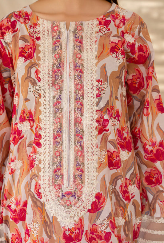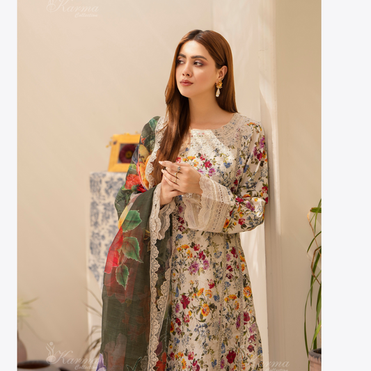 (Multi) Printed Chikenkari Cotton Lawn 3 Pc - Karma Collection