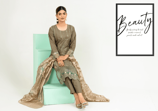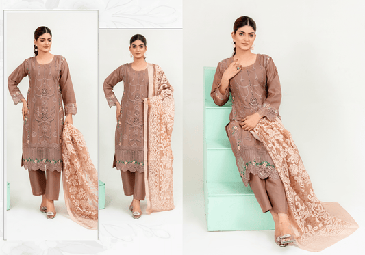 Regular price £17.99 GBPRegular priceUnit price per£34.99 GBPSale price £17.99 GBPChestnut Brown | Chikankari Embroidered Lawn 3Pc dress - Rangz