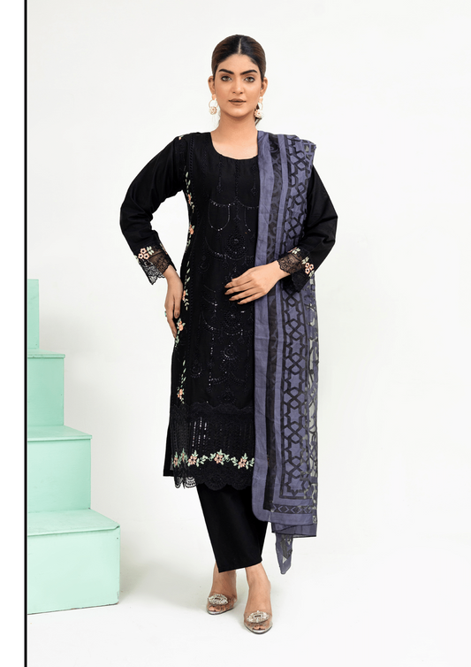 Regular price £17.99 GBPRegular priceUnit price per£34.99 GBPSale price £17.99 GBPBlack|Chikankari Embroidered Lawn 3Pc dress - Rangz