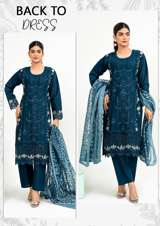 Regular price £17.99 GBPRegular priceUnit price per£34.99 GBPSale price £17.99 GBPBlue|Chikankari Embroidered Lawn 3Pc dress - Rangz