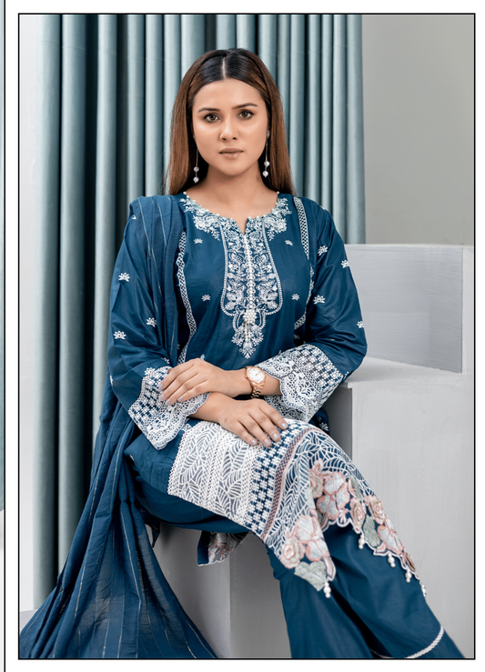 Blue | Reay to Wear| Embroidered Lawn 3Pc dress - Rangz