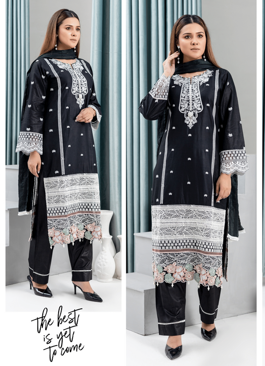 Black | Reay to Wear| Embroidered Lawn 3Pc dress - Rangz