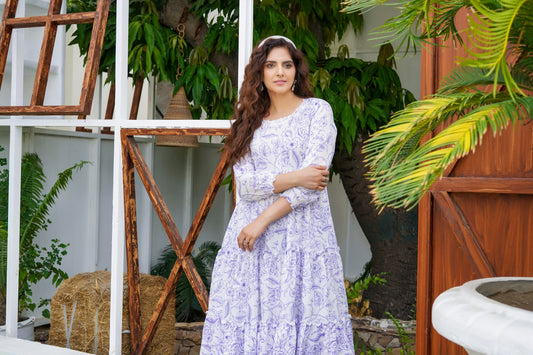 Regular price £24.99 GBPRegular priceUnit price perSale price £24.99 GBPLilac Floral Printed Lawn Long Frock 2 Pc - Simrans