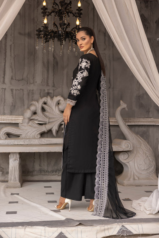 Black floral 3 piece embroidered lawn dress-Simrans