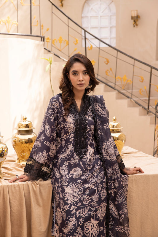 (Black) 3 Piece Printed Lawn dress by Simran