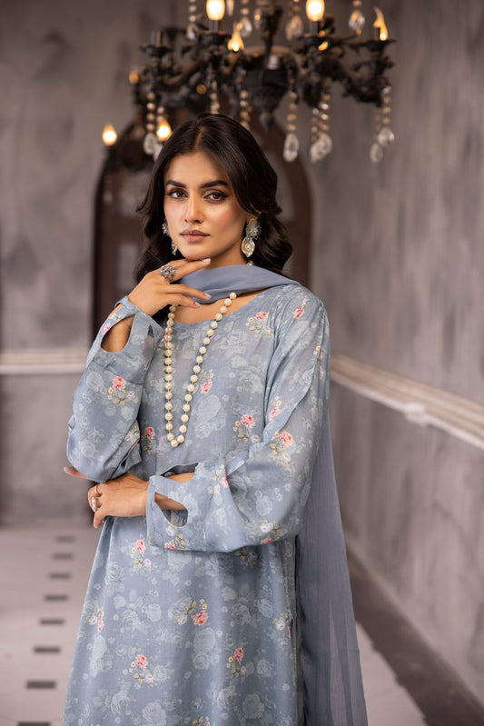 (Greyish Blue) 3 Piece Printed Lawn dress by Simran