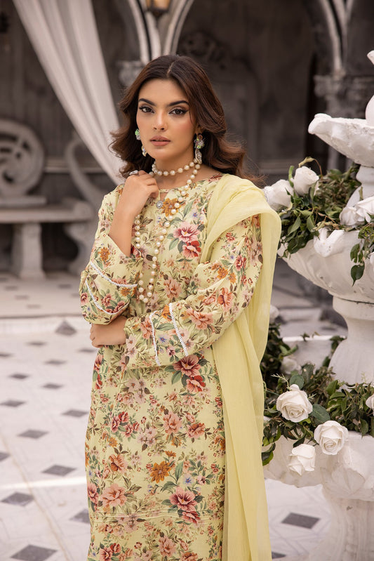 (Dull Yellow) 3 Piece Printed Lawn dress by Simran