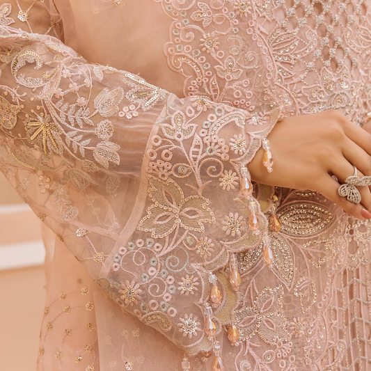 UA-105 Luxury Embroidered Chiffon Long Frock Dress by Umnaa