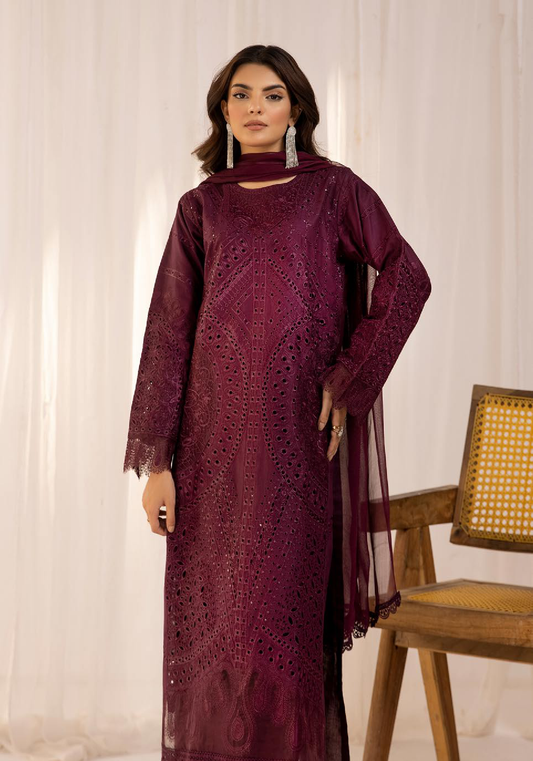 (Maroon) 3 Pc Luxury Chikankari Lawn Dress-Simrans